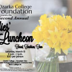The Ozarka College Foundation has announced it will host the second annual Ladies' Luncheon on Saturday, March 15 at Ozarka College - Mountain View, 1800 College Dr. The event will be held in the Ozark Heritage Bank Student Commons Area from 11 a.m. - 1 p.m. This year's event will … [Read more...]