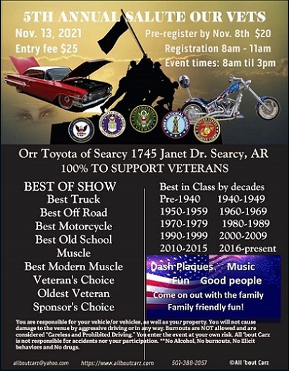 5th Annual Salute our Veterans Bike and Car Show November 13