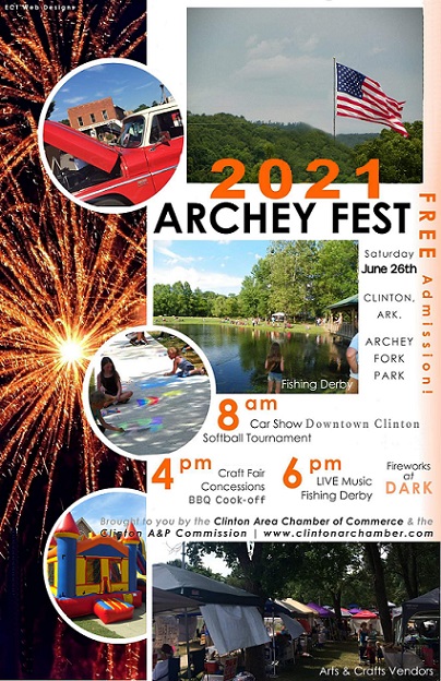 The 2021 Archey Fest in Clinton is set to be a full day of family fun! Saturday, June 26th, you can start your day off in Historic Downtown Clinton with a Timeless Car Show running from 8 am to Noon, then the activities move to Archey Fork Park with a softball tournament, bounce house, and arts, craft, and food vendors. At 6:00 pm the fishing derby and cooking contest begin along with the live music that will carry you into the evening, topping off the evening with a Fireworks Display at dark at the park. Admission is free! For the 2021 Archey fest in Clinton, this Saturday, June 26th. For more information visit the Clinton Chamber of Commerce