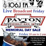 Join Bob Connell and the road gang this Friday 10 till 2 as we kick off Memorial Day weekend sale early at Payton Chevrolet Buick GMC!! They'll have 2016 Buick Lacrosse at 0% for 60 months just to name a few deals. Plus free multi point inspections during our broadcast and we’ll have those … [Read more...]