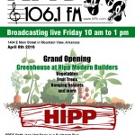 KFFB 106.1 will be broadcasting live this Friday April 8, 2016 with Bob Connell at Hipp Modern Builders from 10 am to 1 pm. Spring into Spring during the Grand Opening of the Greenhouse at Hipp Modern Builders! Also, join us for lunch with Petit Jean hot dogs, wrapped in a Sunbeam Bun, Ice cold … [Read more...]
