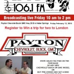 Join KFFB 106.1 on Location at Payton Chevy Buick GMC Friday February 13, 2015