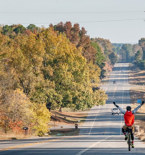 For fall, Fayetteville once again hosts the Arkansaw High Country Race. The race is a 1,000 mile loop following the Arkansas High Country Route, a series of three gravel and paved road loops that connect several of the state’s stunning natural regions, including the Ozark and Ouachita mountain ranges and the Arkansas River Valley. Quickly becoming known as one of the most challenging bikepacking routes in the country, this self-supported bicycle race departs from downtown Fayetteville on Saturday, Oct. 9.