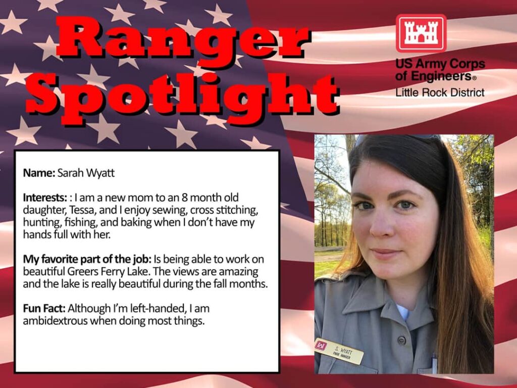 We want everyone to get to know our rangers better, so we will be doing spotlights all week. Sarah Wyatt, from Greers Ferry! Click the photo below to learn more about Sarah.