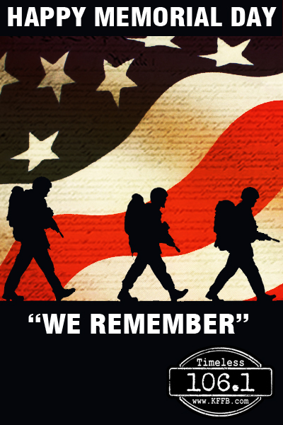 Happy Memorial Day as We Remember with a Patriotic song each hour from Timeless 106.1 KFFB