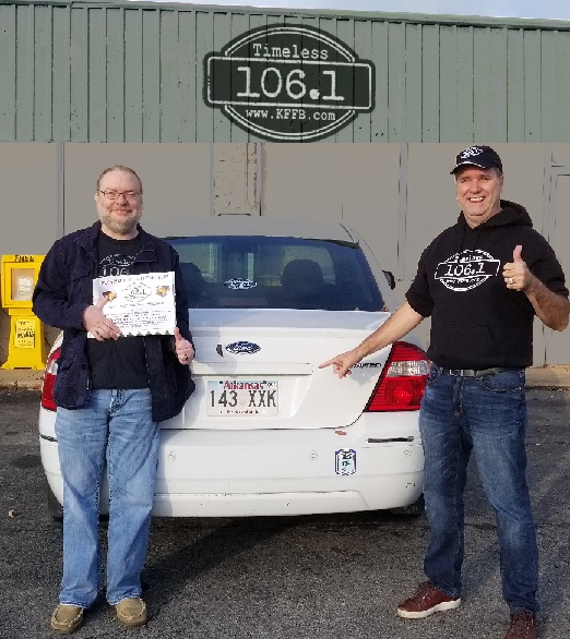 Let’s Congratulate John Barnum from Greers Ferry, our sixth winner of the Timeless 106.1 KFFB Treasure Chest Window Sticker Giveaway, he picked up over $850.00 of gift certificates!