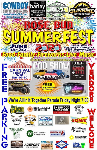 Join Timeless 106.1 KFFB’s Bob Connell and the Timeless Team Saturday, June 20th at Rose Bud Summerfest 2020, with the Broadcast Starting at 10 am. Summerfest has been Approved by the Arkansas Department of Health.