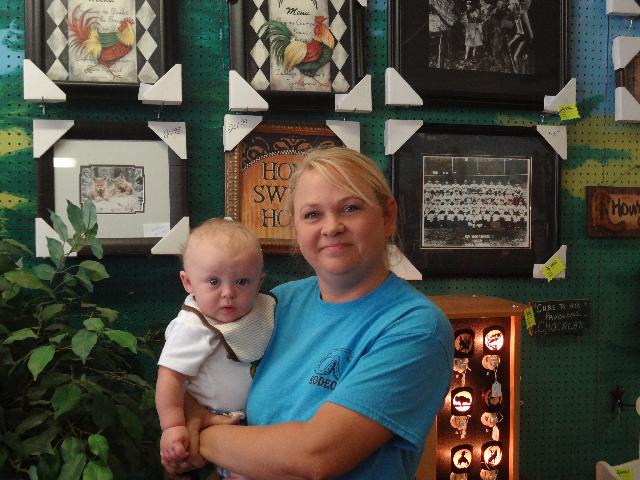 - Janell takes time for a picture with her grand baby at Wallace Woodworks