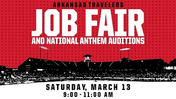 Arkansas Travelers are hiring for part-time positions around the ballpark and doing national anthem auditions! Be at the Job Fair this Saturday, March 13, between 9-11 AM for an interview.