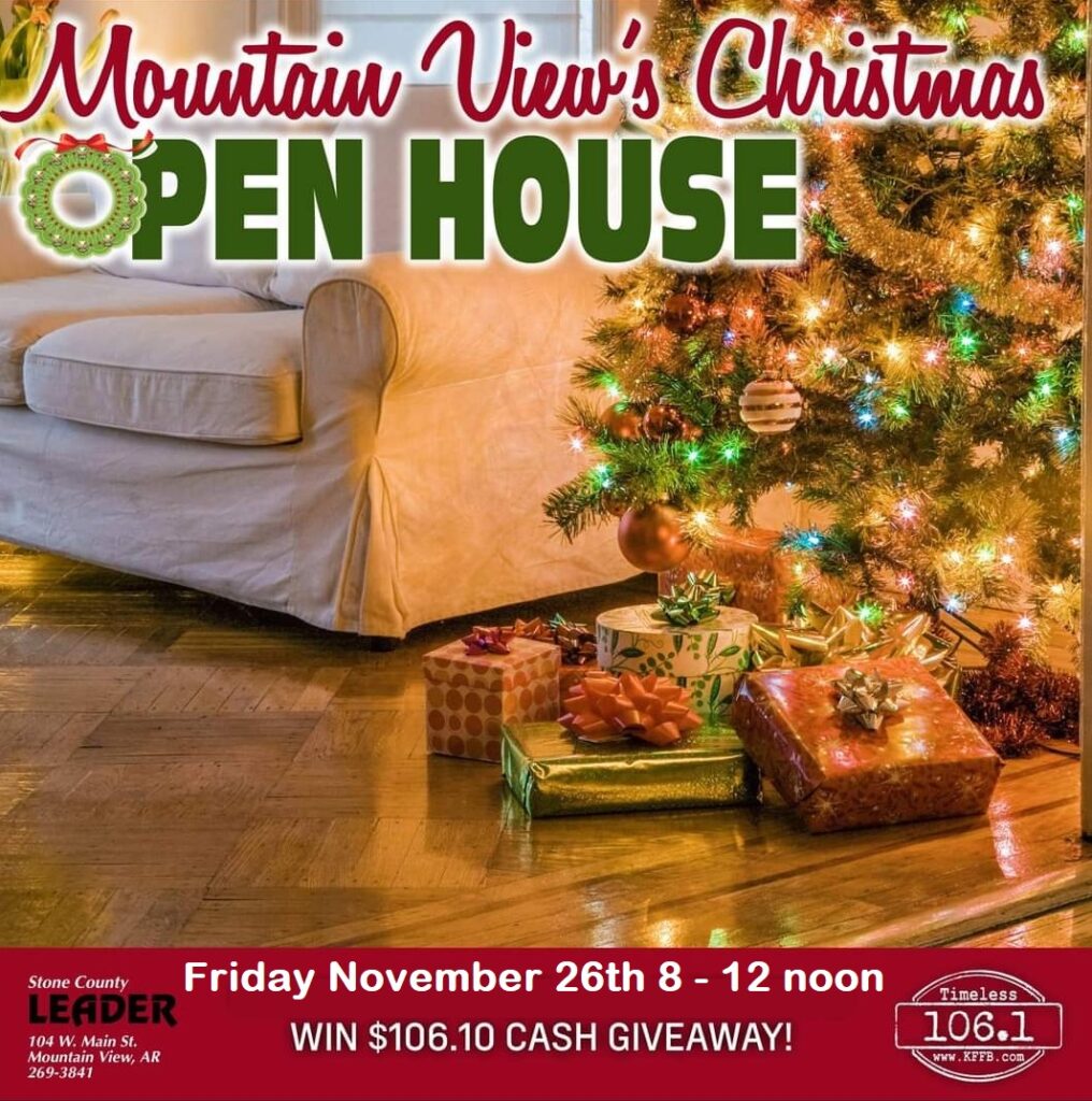 Join the Timeless 106.1 KFFB as we celebrate the Christmas season with Mountain View’s Christmas Open House, this Friday, November 26, 2021. Enjoy one of the most unique Black Friday shopping experiences ever on the Courthouse Square in Mountain View. Timeless 106.1 KFFB will broadcast live from 8 a.m. till 12 Noon Plus, someone will walk away, $106.10 compliments of Timeless 106.1 KFFB and The Stone County Leader. Celebrate Black Friday on the Square in Mountain View during the Christmas Open House with Timeless 106.1 KFFB!