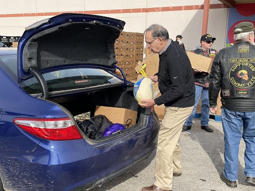 The distribution event, made possible through a grant from Feeding America, was held at the River Valley Regional Food Bank in Fort Smith. Boozman, along with members of Combat Veterans of Arkansas, Chapter 7-3, distributed supplies including half of a ham, a turkey and pantry items including canned vegetables, apple pie filling, stuffing mix and more.