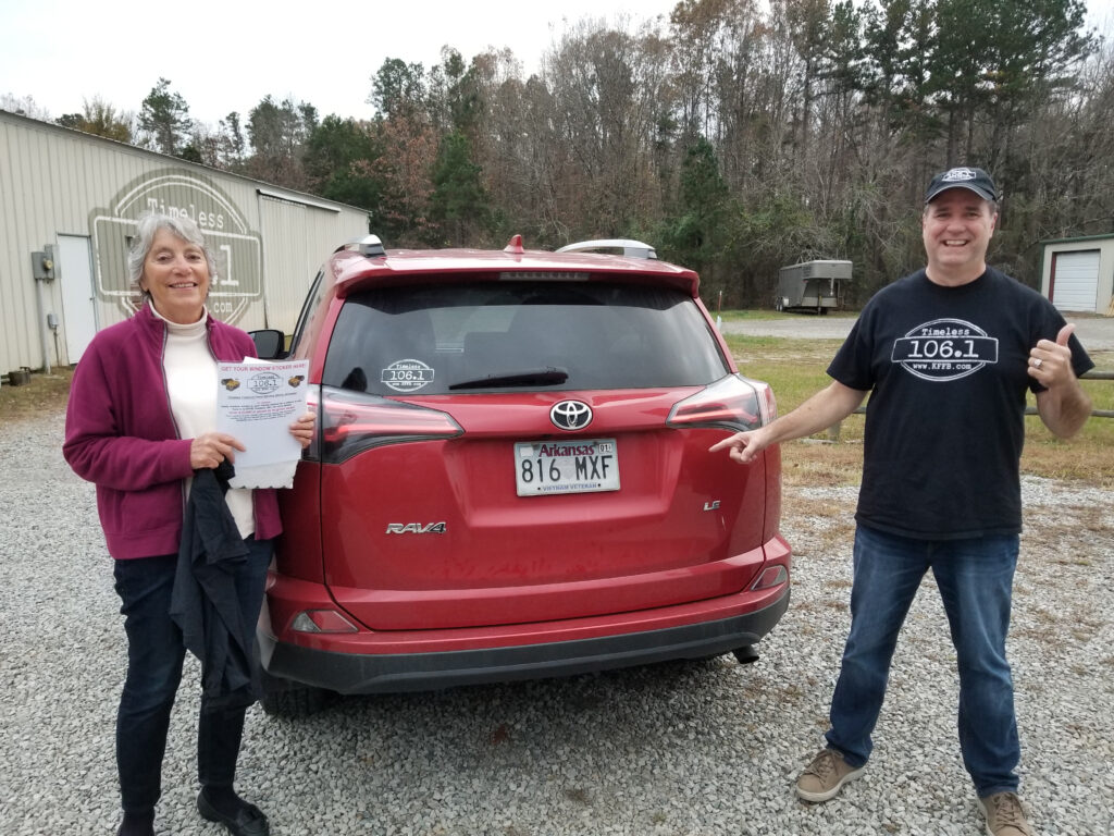 Let’s Congratulate Sue Megahan from Tumbling Shoals, our ninth winner of the Timeless 106.1 KFFB Treasure Chest Window Sticker Giveaway, she picked up over $600.00 of gift certificates!