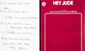 The lyric sheet, which McCartney used during the July 1968 recording session at London’s Trident Studios and then gifted to a studio engineer, had a pre-auction estimate of $160,000. The sale of the “Hey Jude” lyrics highlighted Julien’s Auctions’ Beatles-themed lot that coincided with the 50th anniversary of the band’s breakup.